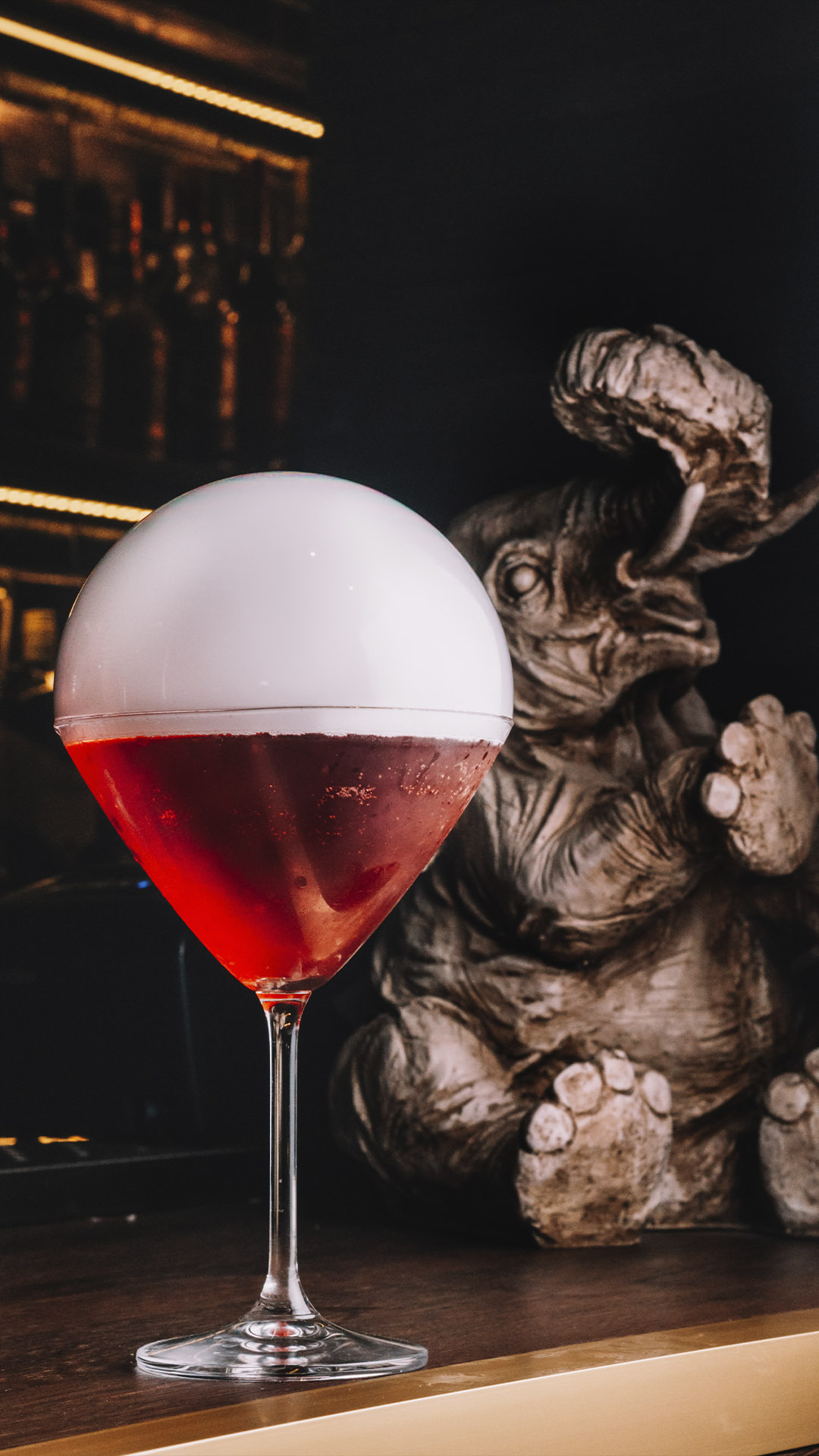 Vodka de sandía, cordial de arándanos, jugo de pomelo rosado y burbuja de humo cítrico.